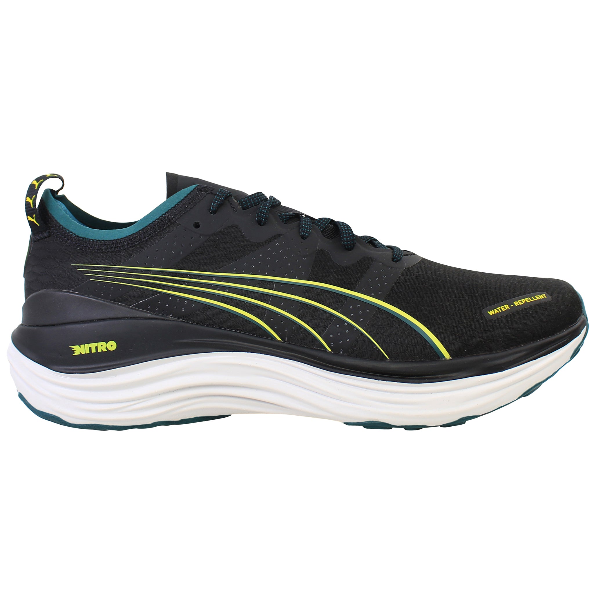 The PUMA ForeverRun NITRO™ Men's Running Shoes in black are engineered to provide exceptional support and cushioning for runners of all levels. These shoes feature advanced technologies designed to enhance comfort and performance during your runs.