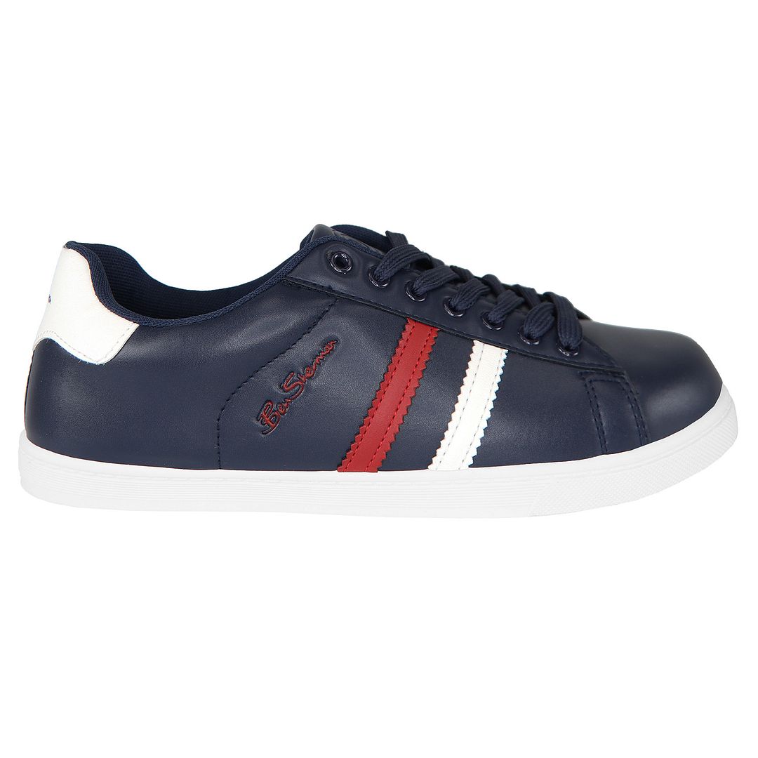 The Ben Sherman Gustavo II Men's Blue Trainers are a stylish and versatile addition to any casual wardrobe. Crafted from high-quality synthetic leather, these trainers feature a sleek navy blue upper accented with striking red and white stripes for a modern, sporty look. The classic lace-up design ensures a secure fit, while the cushioned insole provides comfort for all-day wear.