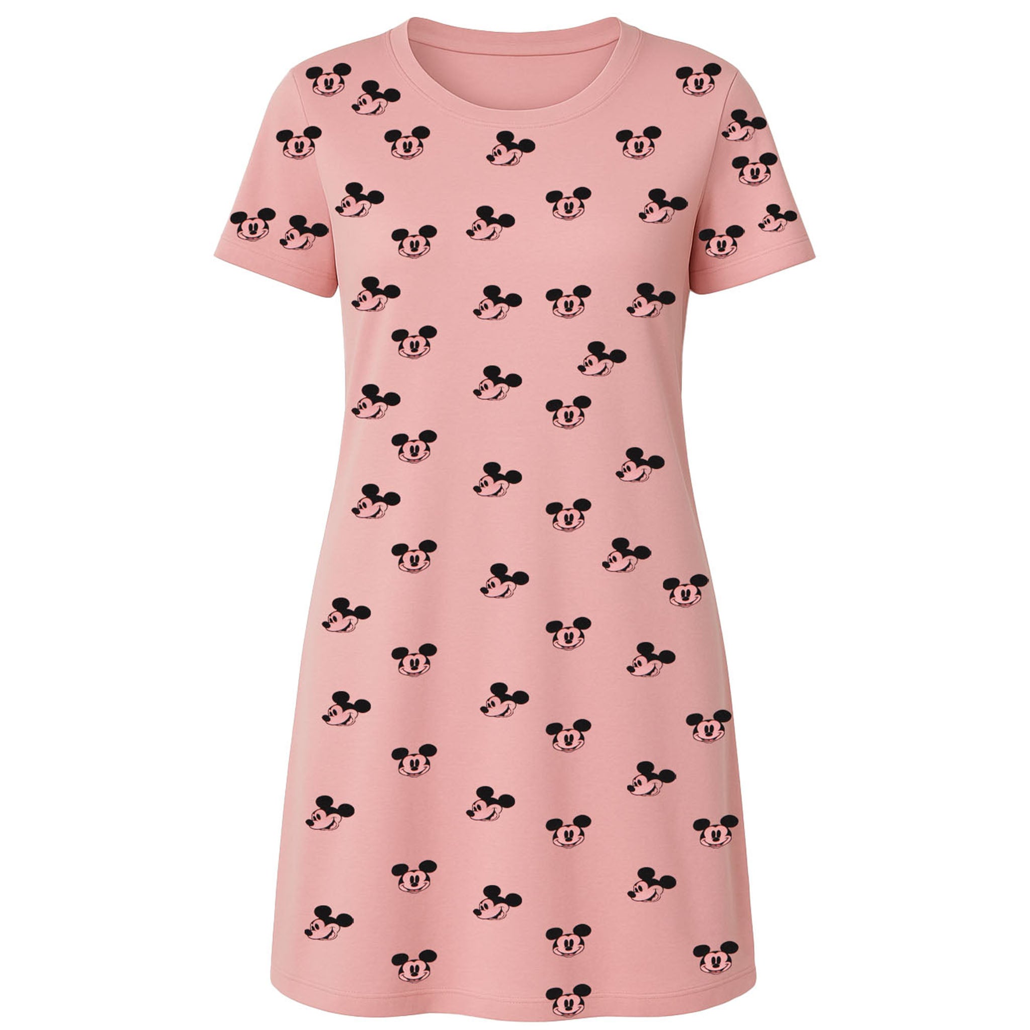 Drift off into Disney dreams with this charming Mickey Mouse sleep tee. Designed with comfort and cuteness in mind, this pink women's T-shirt features an all-over print (AOP) of Mickey Mouse heads for a playful, iconic look. Crafted from soft cotton, it offers a relaxed fit that’s perfect for bedtime or lounging around the house. Whether you're a lifelong Disney fan or just love cute sleepwear, this tee adds a sprinkle of magic to your nighttime routine.