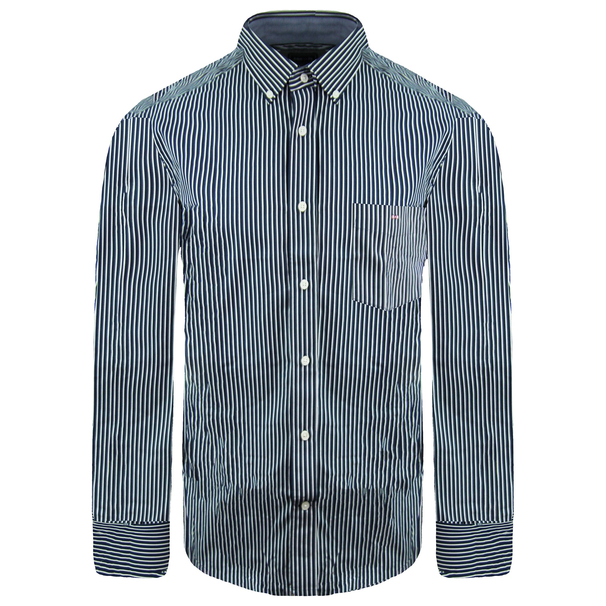 The Eden Park Regular Stripe Long Sleeve Oxford Shirt for men combines classic style with a contemporary edge. Featuring bold blue and white stripes, this shirt offers a sharp, tailored look that exudes sophistication. Made from high-quality Oxford fabric, it provides both comfort and durability. The button-down collar and single chest pocket with subtle branding enhance the shirt's refined appeal. Perfect for both business and casual wear, this shirt pairs well with jeans, chinos, or dress trousers, making it a versatile wardrobe essential for any stylish man.