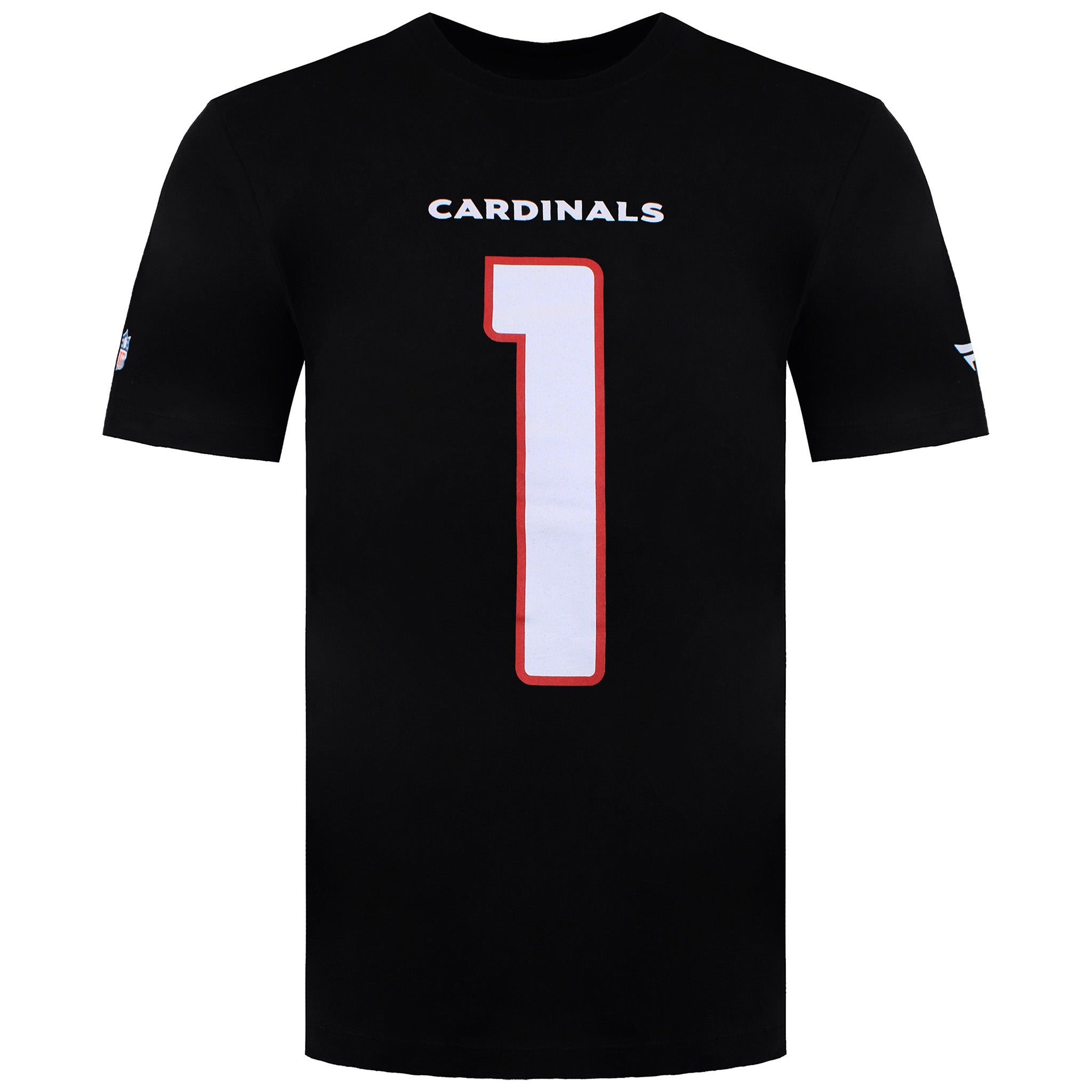 The Fanatics NFL Arizona Cardinals Kyler Murray 1 T-Shirt is the perfect way to show your support for the rising star quarterback. Crafted from soft, breathable fabric, this t-shirt offers all-day comfort whether you're at the game, watching from home, or out on the go. Featuring Kyler Murray's name and 1 on the back, along with the Arizona Cardinals logo on the front, this t-shirt lets you represent both your favorite player and team with style. The classic crew neck design and bold graphics make it an essential piece for any Cardinals fan. Whether you're cheering on Kyler Murray or showing off your team pride, the Fanatics NFL Arizona Cardinals Kyler Murray T-Shirt is a must-have for any fan's wardrobe.