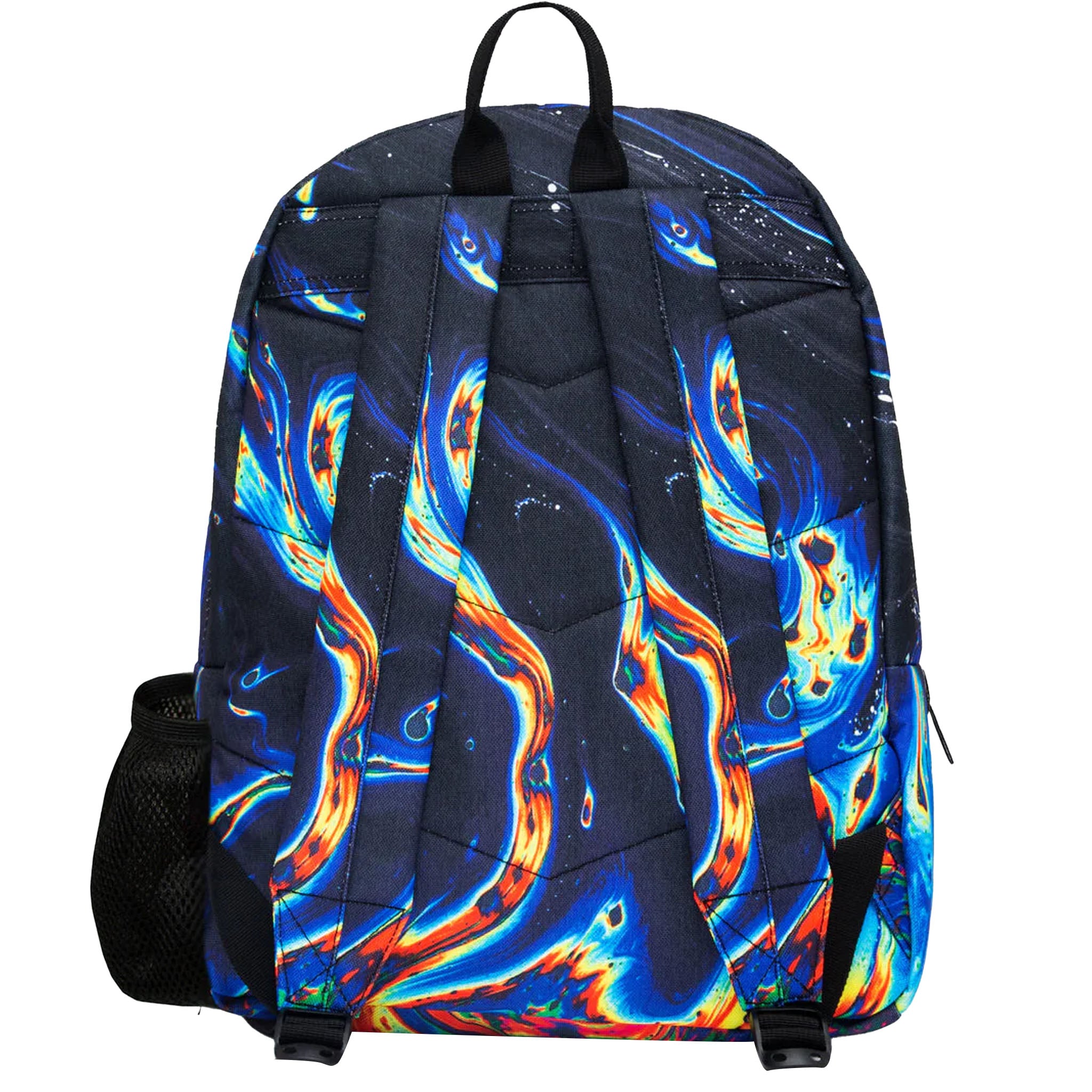 • The bold, multicolour marble-style pattern gives the backpack a unique, vibrant look — ideal for kids who like expressive accessories.