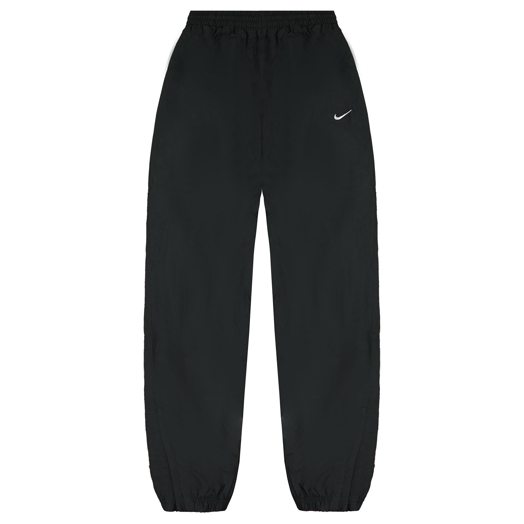 The sleek black design is enhanced with a subtle Nike swoosh logo on the upper leg, adding a touch of signature branding. Elasticated cuffs provide a snug fit at the ankles, making these track pants ideal for layering or pairing with your favorite sneakers. Whether you're hitting the gym, running errands, or lounging, these joggers offer a classic, sporty look with exceptional functionality.