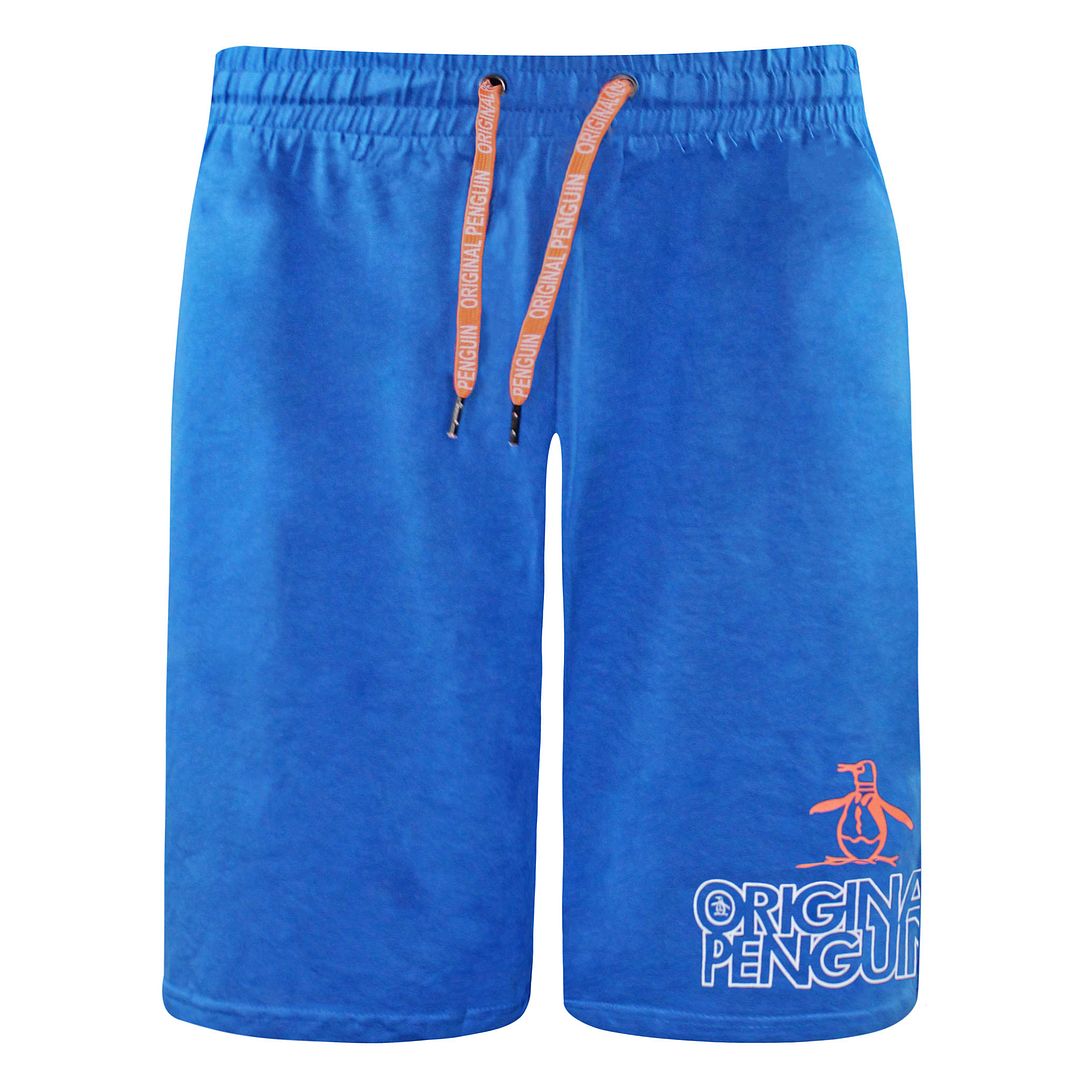 The Original Penguin Logo Men's Blue Lounge Shorts are a perfect blend of comfort and style for relaxed days at home or casual outings. Crafted from soft, breathable fabric, these bright blue shorts offer a bold, vibrant look. They feature an elasticated waistband with an adjustable drawstring for a secure and comfortable fit. The drawstring has the "Original Penguin" branding in a contrasting orange, adding a pop of color and brand flair.