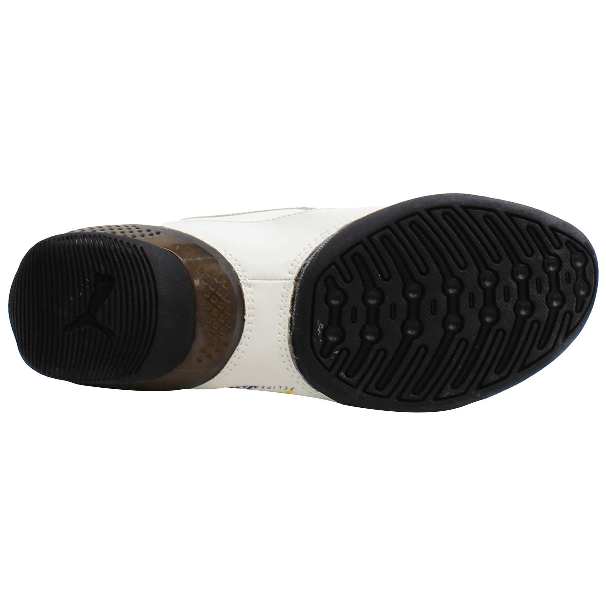 The Puma Furio V Massa Men's Trainers are a stylish and performance-driven footwear choice, designed in collaboration with Formula 1 legend Felipe Massa. These sleek white trainers feature a bold green stripe design along the side, complemented by a vibrant yellow and green interior. The shoes are equipped with a hook-and-loop strap for a secure and adjustable fit, offering convenience and comfort. The unique heel design incorporates a semi-transparent finish, adding a modern touch to the overall look. Ideal for both casual wear and active use, the Puma Furio V Massa trainers deliver on both style and functionality, making them a standout choice for sneaker enthusiasts and sports fans alike.