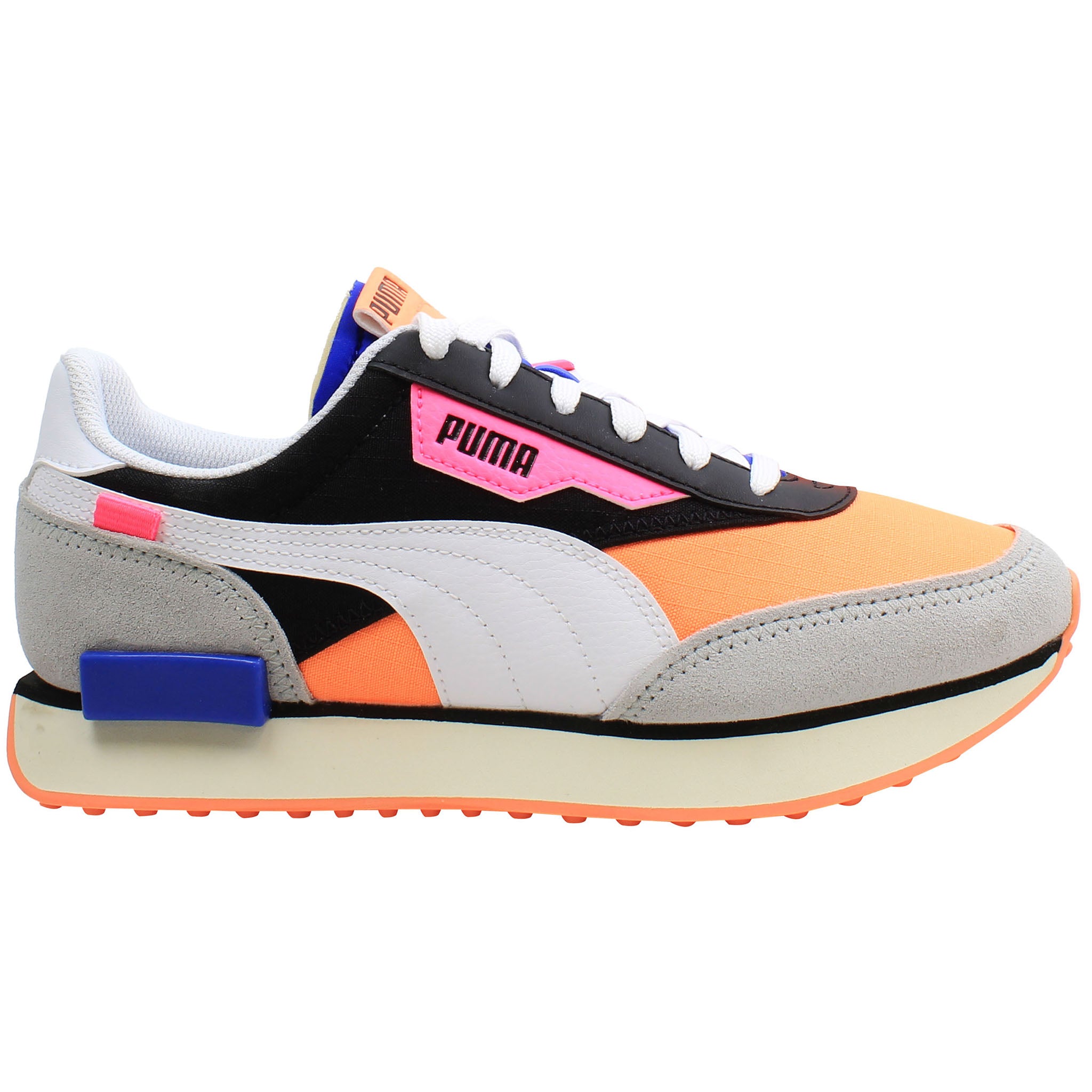 The Puma Future Rider Play On Men’s Multicoloured Trainers combine retro aesthetics with a modern twist, perfect for those who seek both style and comfort. Featuring a bold mix of vibrant colors, including orange, pink, black, white, and blue, these trainers make a statement with their eye-catching design. The upper is constructed from a combination of suede and synthetic materials for durability, while the lightweight midsole provides cushioned support for all-day wear. The flexible, textured rubber outsole ensures excellent traction and stability. The iconic Puma branding on the side and tongue adds a touch of sporty elegance, making these trainers a versatile addition to any wardrobe. Whether you're hitting the streets or looking for a pop of color in your casual outfits, the Puma Future Rider Play On is designed to deliver both performance and style.