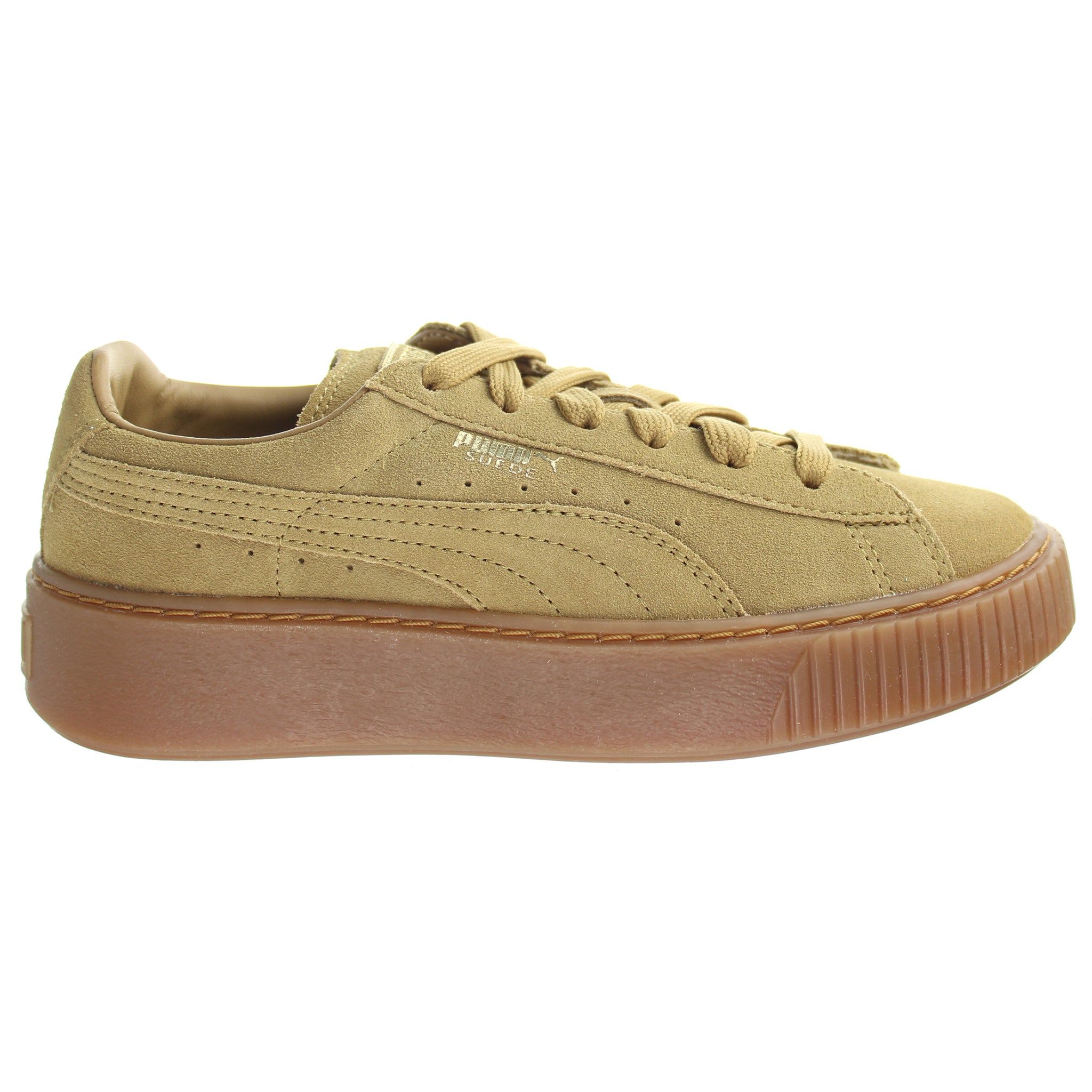 The Puma Suede Platform SD PS Kids Gold Trainers combine a classic silhouette with a trendy, elevated twist. Crafted from premium suede in a warm gold hue, these stylish sneakers feature a platform sole that adds height while maintaining a sleek, comfortable fit. The gum-colored rubber sole enhances grip and durability, making these shoes practical for everyday wear. The iconic Puma formstrip is displayed on the sides, adding a touch of sport-inspired flair. Perfect for kids who want both fashion and function, these trainers are ideal for casual outings or adding a cool edge to any outfit.