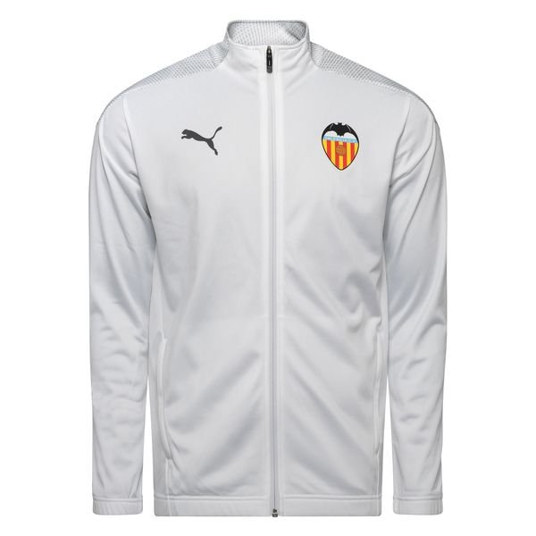 The Puma Valencia CF Men's White Stadium Jacket combines sporty style with fan pride, making it the perfect choice for both game day and casual wear. This sleek white jacket features the iconic Valencia CF club crest on the chest, proudly displaying your team loyalty. Made from high-quality, breathable fabric, it ensures comfort whether you're cheering from the stands or going about your day. The Puma logo on the left side of the chest adds a touch of athletic flair. Designed for mobility and ease, this jacket includes a full-length zipper and ribbed cuffs, allowing for a secure fit and versatility in wear. With its clean white design and subtle contrast detailing, this jacket is a must-have for any Valencia CF fan.