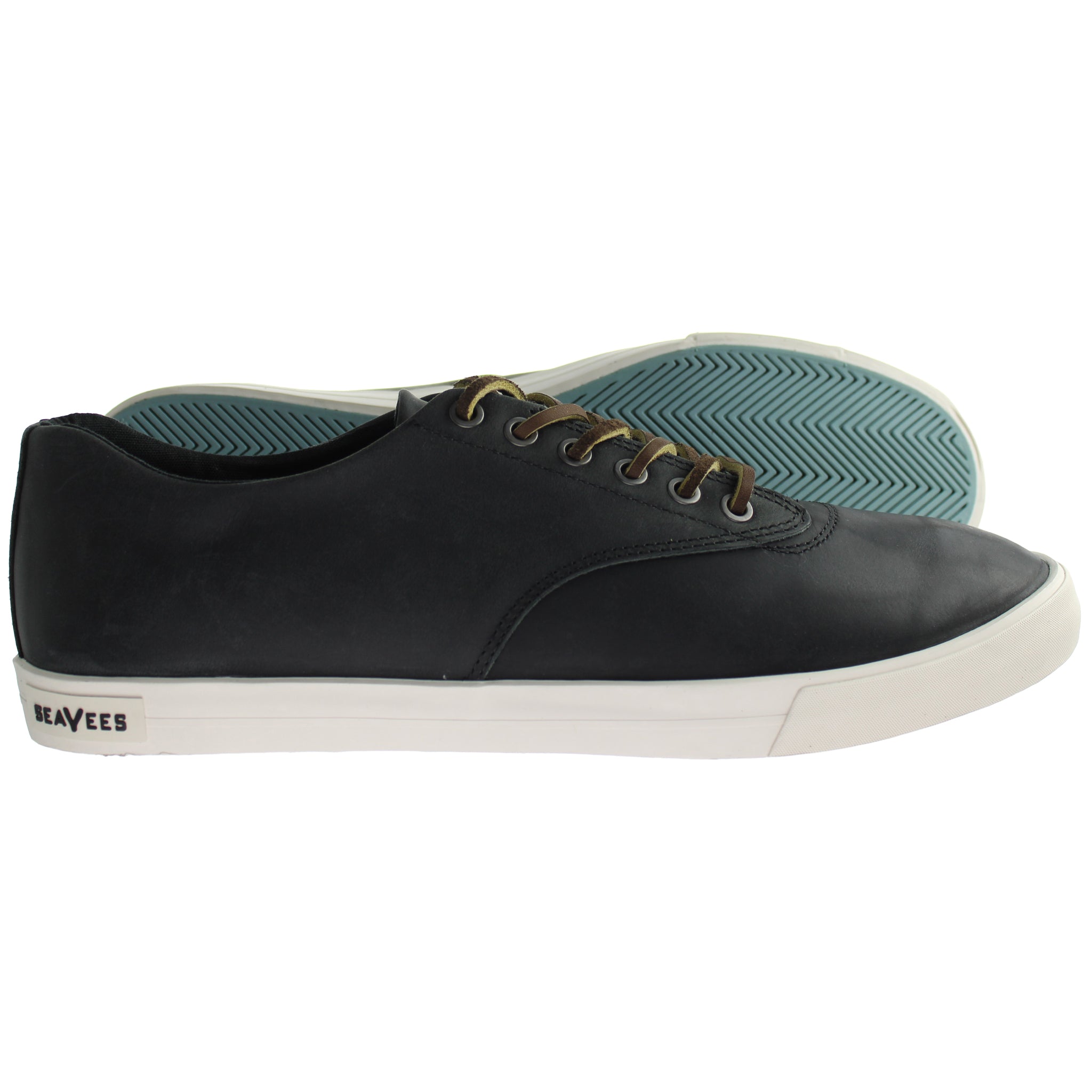 The SeaVees Hermosa Sneaker in Wintertide Black Oiled Rugged Leather offers a perfect blend of durability and sleek design. Crafted from high-quality black oiled leather, this sneaker features a smooth and polished look with a rugged finish for added strength. The classic low-top silhouette is complemented by vintage-inspired brass eyelets and sturdy laces, delivering a sophisticated yet practical style. The clean, minimalist design is finished with a white rubber sole that provides comfort and support for everyday wear. Ideal for those seeking a versatile, stylish, and robust sneaker.