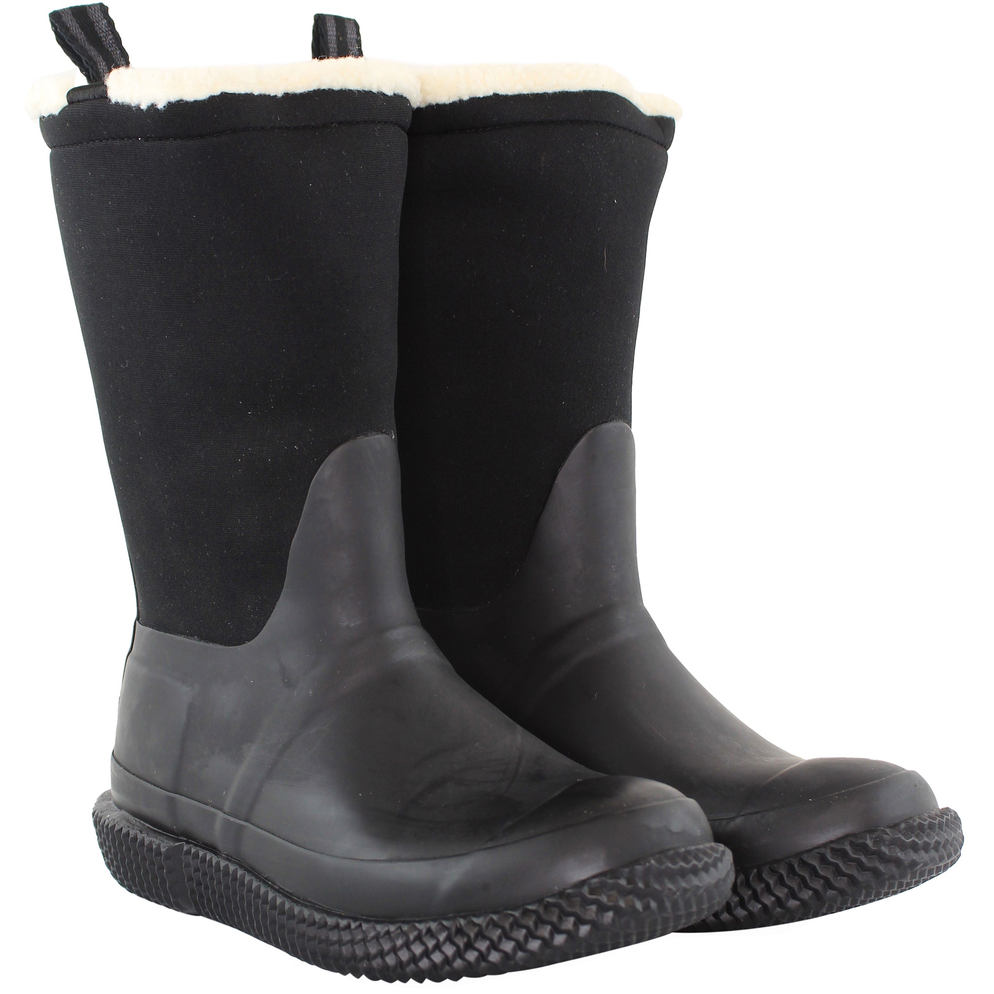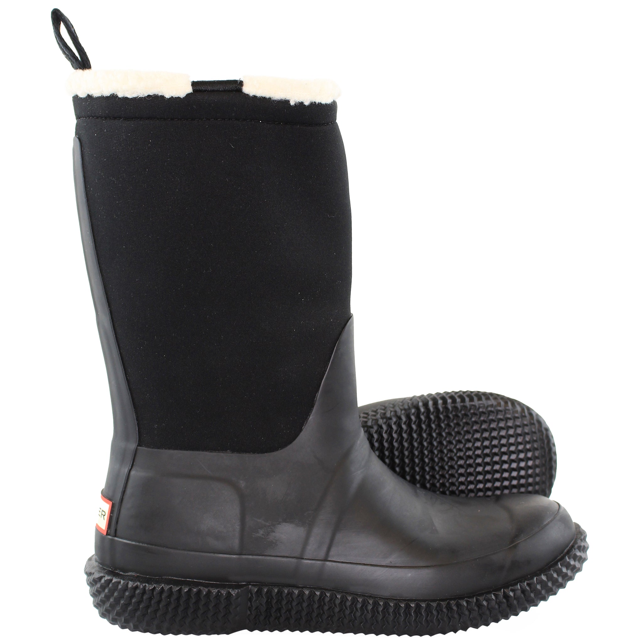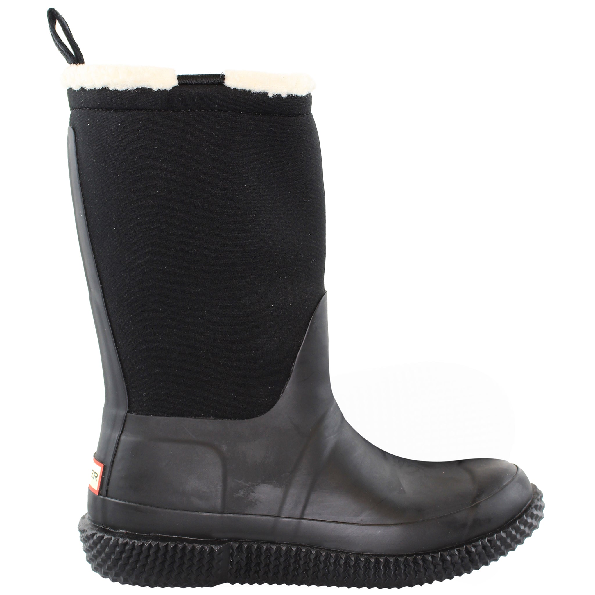 The Hunter Sherpa Webbing boots blend the iconic Wellington-boot silhouette with winter-ready comfort and casual styling. In the black colourway they offer a versatile, clean look that transitions between wet city days and colder weather outdoors. With a pull-on design, warm sherpa-style lining, and webbing detailing, they’re built for both style and function in rainy or chillier conditions.